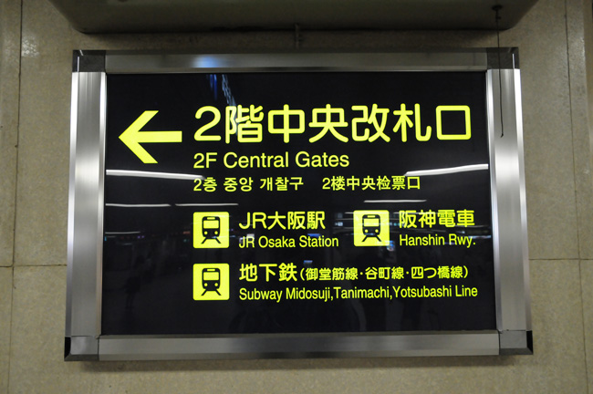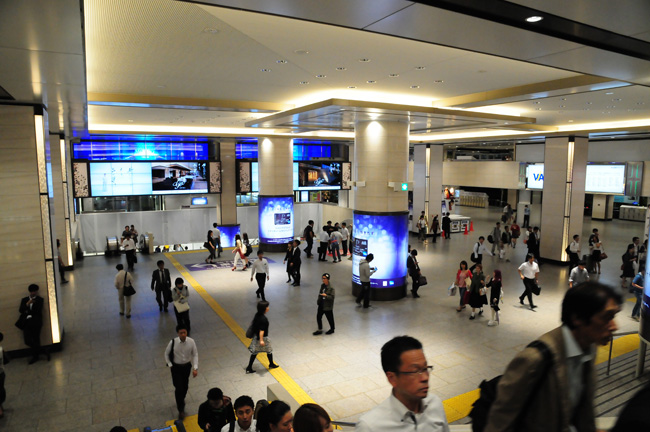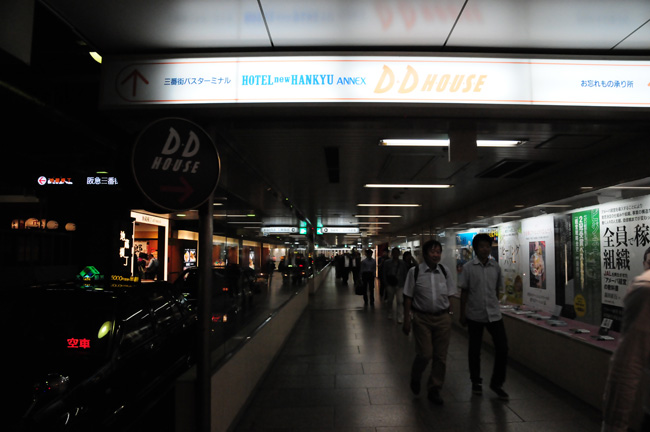 出閘門後,搭電挫梯下樓,眼前的室內廣場就是阪急三番街。